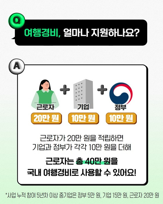 - 총 40만 원을 국내 여행 경비로 사용 가능